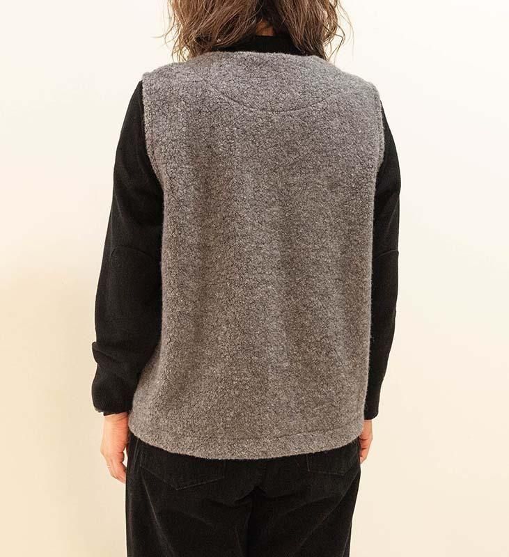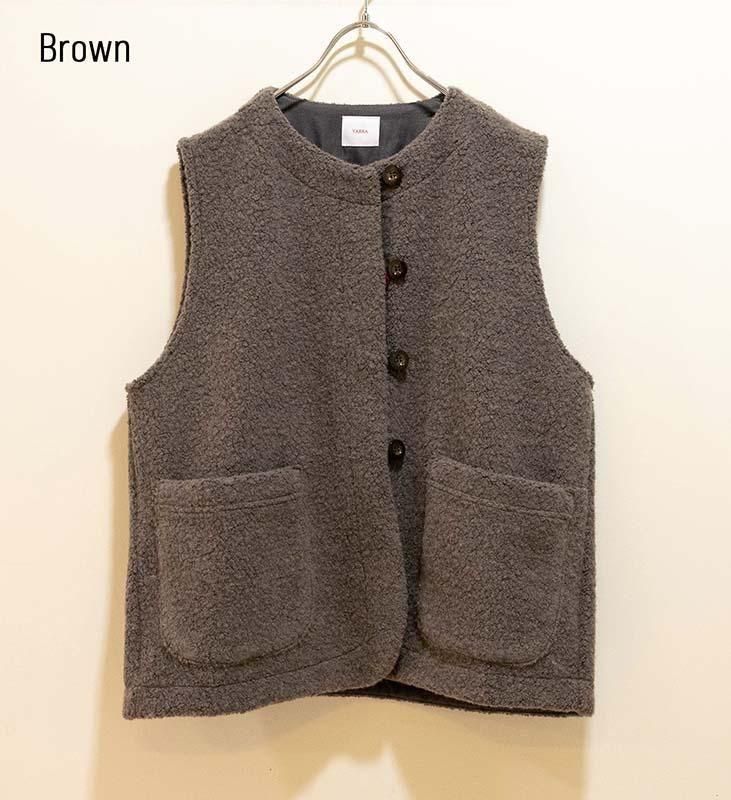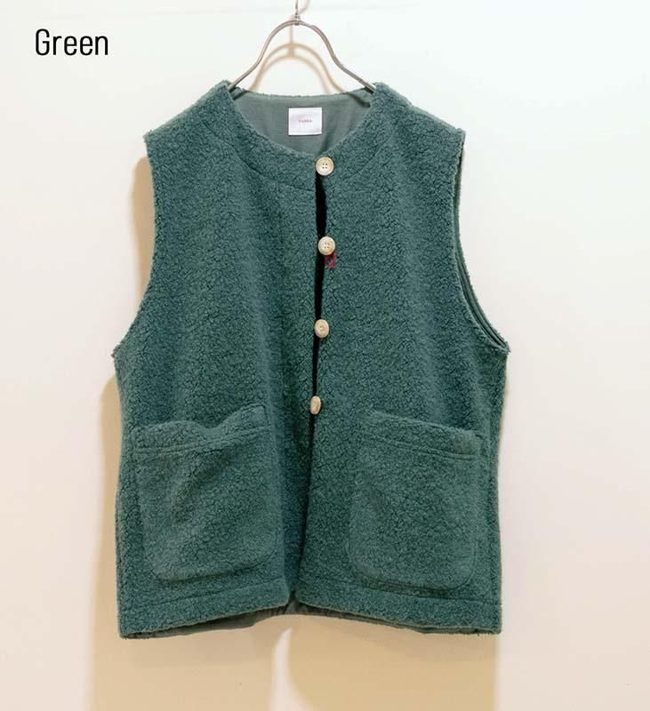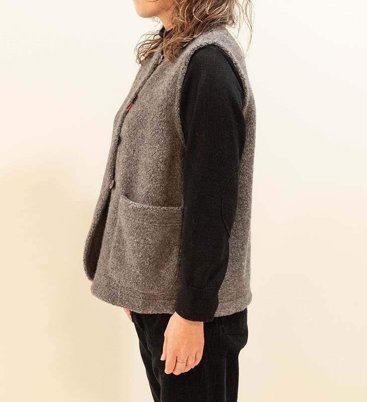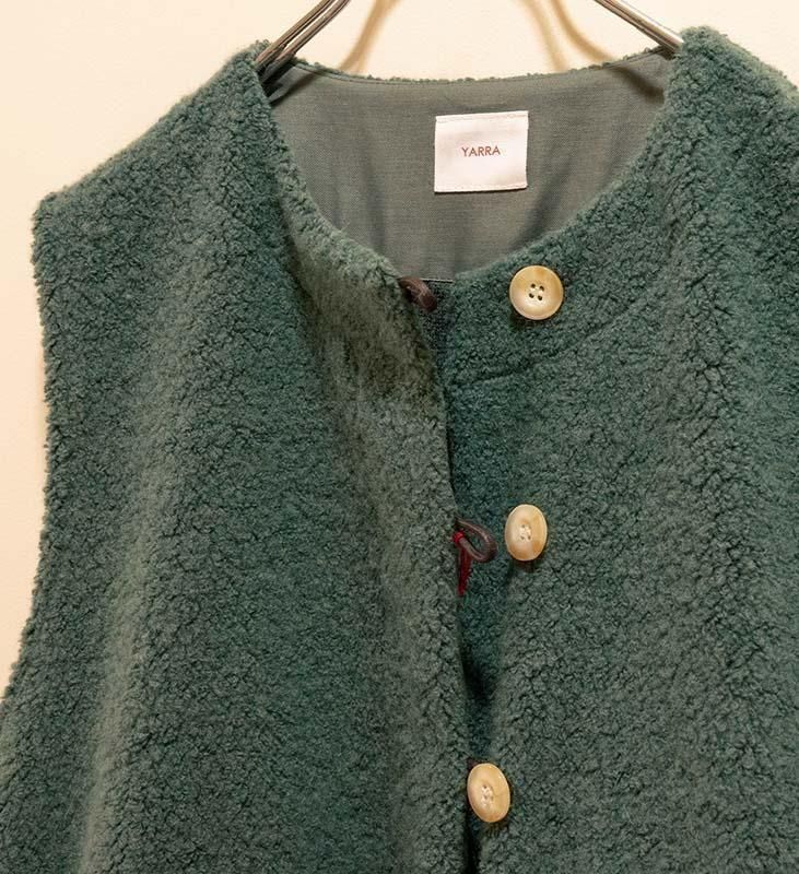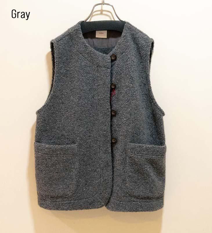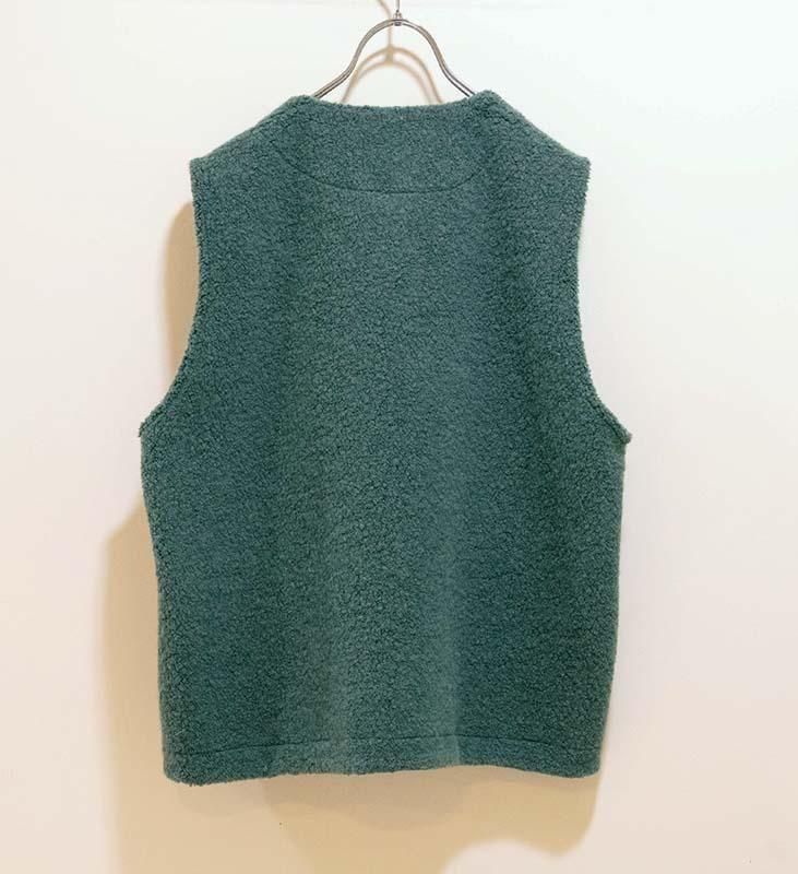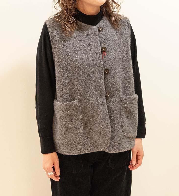 柔らかく立体感のある ウールリッチパイル素材 を使用した、軽やかで肩が凝りにくいベストです。
